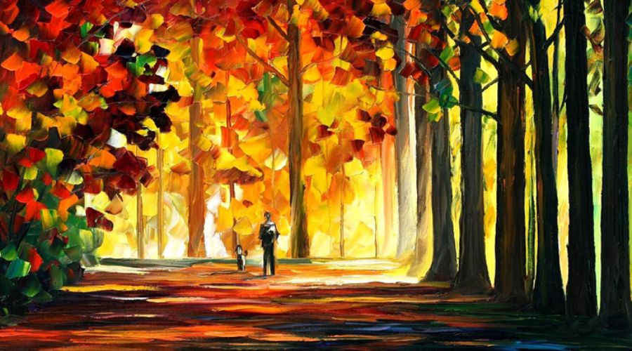 Leonid Afremov 1955 Belarus doğumlu usta bir ressam. Genellikle parlak renkli manzaralar resmediyor. Çalışırken tipik palet ve yağlı boya kullanıyor.